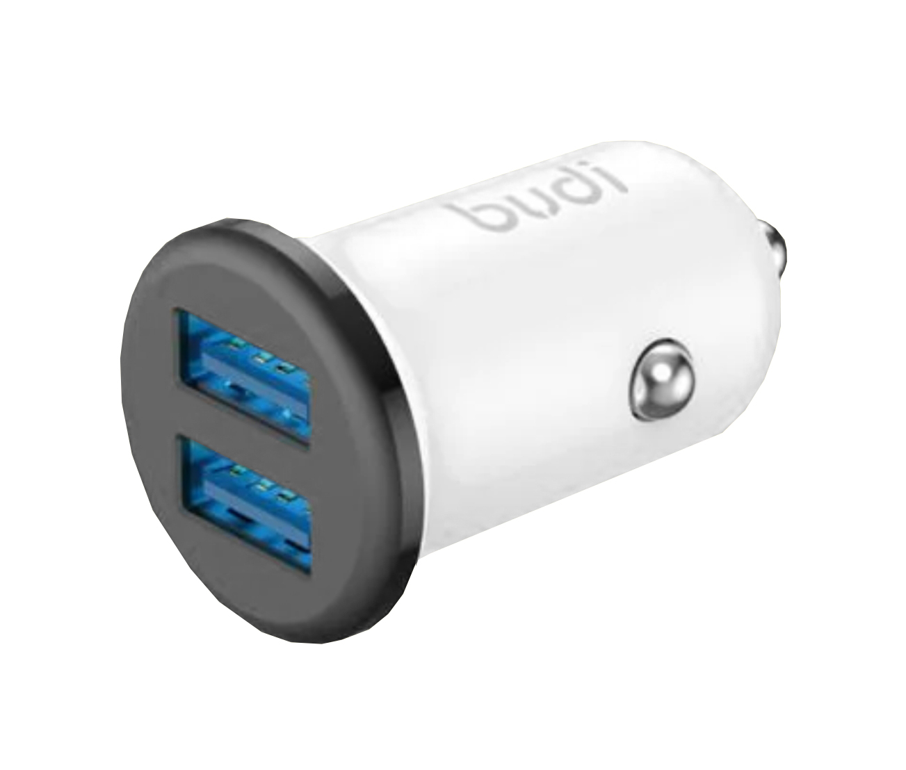 شارژر فندکی 12 وات بودی مدل Budi CC603LW با 2 خروجی USB به همراه کابل USB به لایتنینگ با گارانتی ۱۸ ماهه شرکتی (۶ ماه تعویض)