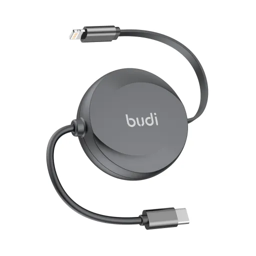 کابل شارژ جمع شونده USB-C به لایتنینگ بودی مدل Budi DC257TL10B توان 27 وات طول یک متر با گارانتی ۱۸ ماهه شرکتی (۶ ماه تعویض)