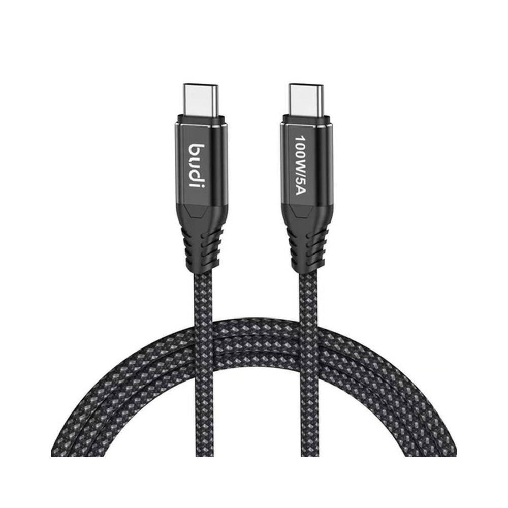 کابل شارژ کنفی USB-C به USB-C بودی مدل Budi DC220TT15B توان 100 وات طول 1.5 متر با گارانتی ۱۸ ماهه شرکتی (۶ ماه تعویض)