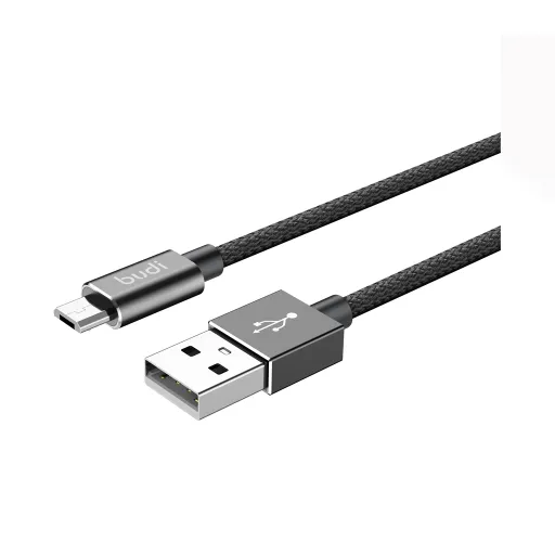 کابل فست شارژ کنفی USB به microUSB بودی مدل Budi DC180M10BS جریان 2.4 آمپر طول یک متر با گارانتی ۱۸ ماهه شرکتی (۶ ماه تعویض)