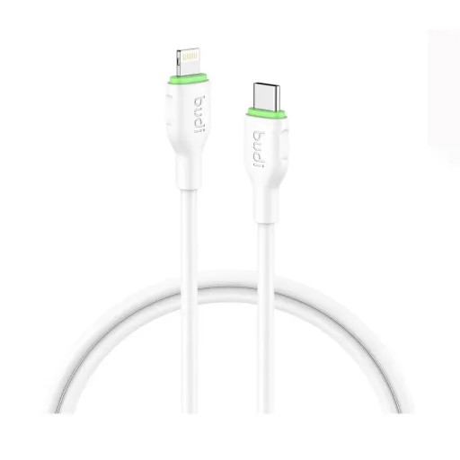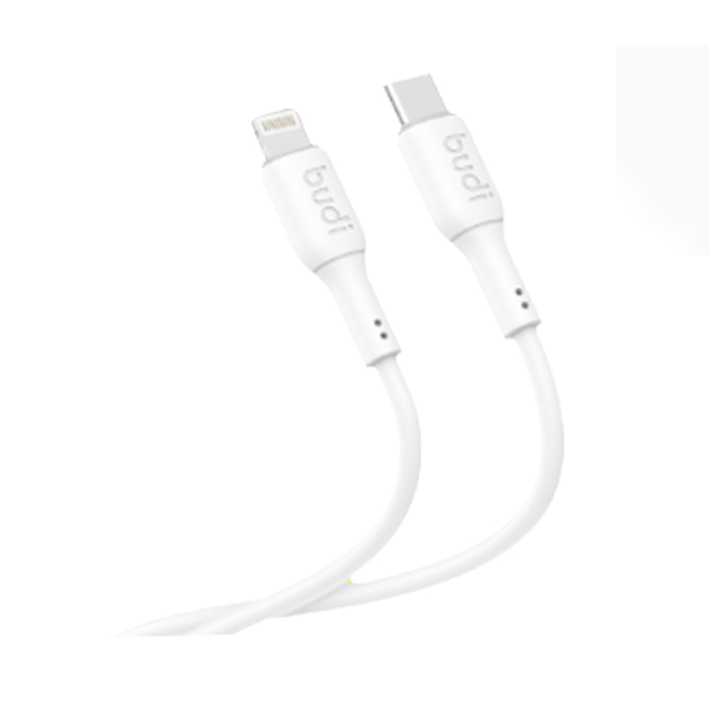 کابل فست شارژ سیلیکونی USB-C به لایتنینگ بودی مدل Budi DC202TL12W توان 27 وات طول 1.2 متر با گارانتی ۱۸ ماهه شرکتی (۶ ماه تعویض)
