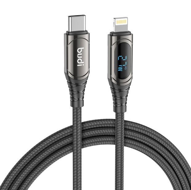 کابل فست شارژ کنفی USB-C به لایتنینگ بودی مدل Budi DC126TL10H توان 27 وات طول 1 متر با گارانتی ۱۸ ماهه شرکتی (۶ ماه تعویض)