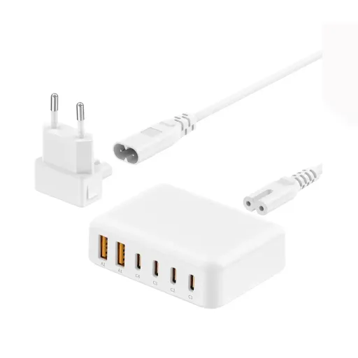 شارژر دیواری 60 وات بودی مدل Budi AC318EW با چهار خروجی USB-C و دو خروجی USB به همراه کابل 1.5 متری با گارانتی 18 ماهه شرکتی (6 ماه تعویض)