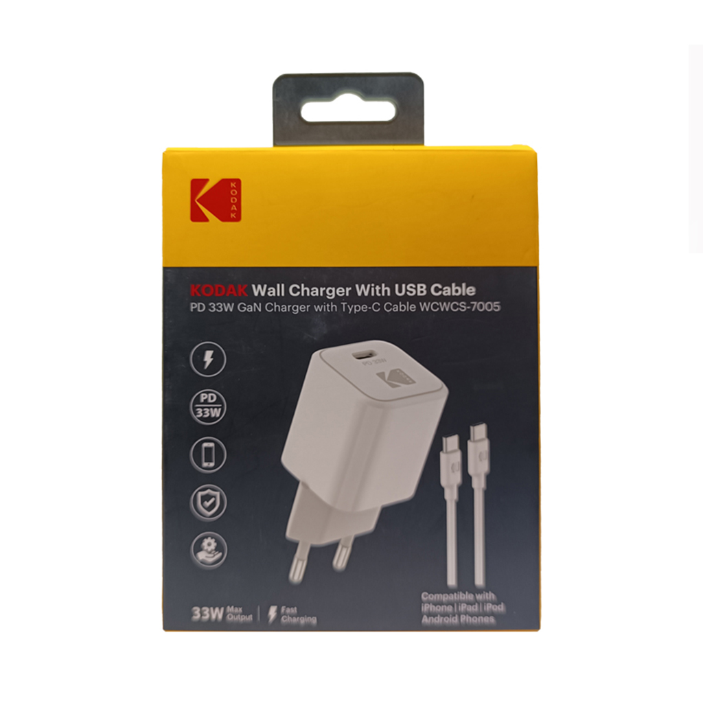 شارژر دیواری کداک 33 وات مدل Kodak WCWCS-7005 به همراه کابل USB-C به USB-C با گارانتی 12 ماهه شرکتی