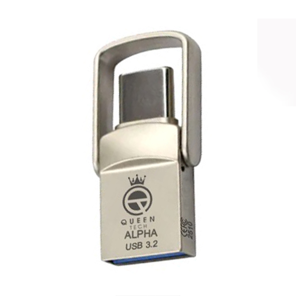 فلش مموری 128 گیگابایت کویین تک مدل Queen Tech Alpha USB 3.2 Dual Type-C با گارانتی مادام العمر شرکتی