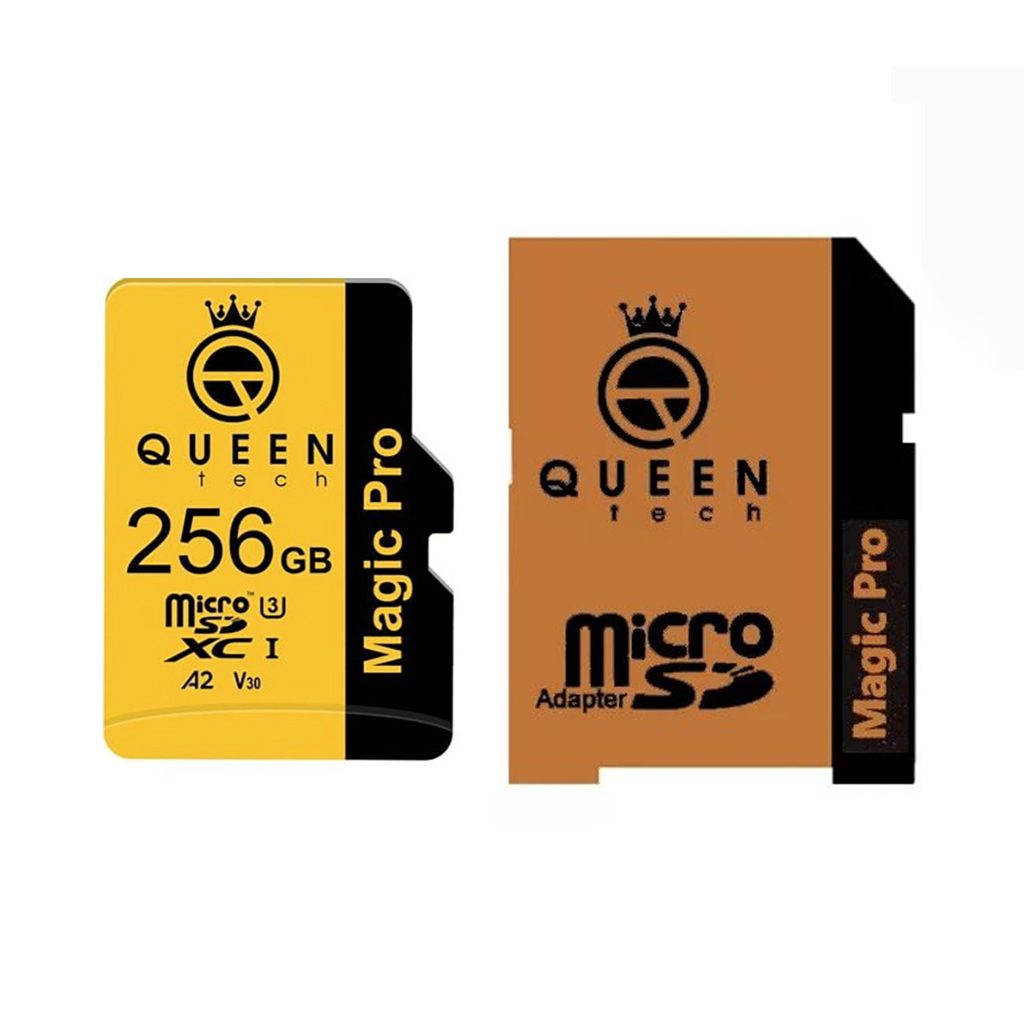 کارت حافظه میکرو اس دی 256 گیگابایت کویین تک مدل QueenTech MicroSD XC CL10 U3 633X Magic Pro UHS-I V30 A2 4K به همراه آداپتور با گارانتی مادام العمر شرکتی