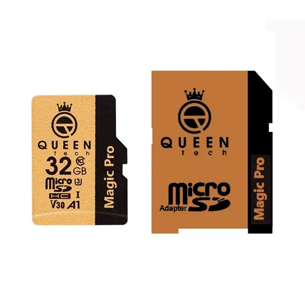 کارت حافظه میکرو اس دی 32 گیگابایت کویین تک مدل QueenTech MicroSD HC CL10 U3 633X Magic Pro UHS-I V30 A1 4K به همراه آداپتور با گارانتی مادام العمر شرکتی