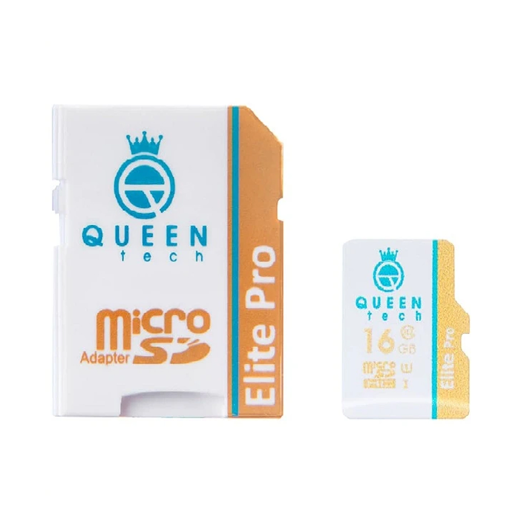 کارت حافظه میکرو اس دی 16 گیگابایت کویین تک مدل QueenTech MicroSD HC CL10 U1 566X Elite Pro UHS-I V10 به همراه آداپتور با گارانتی مادام العمر شرکتی