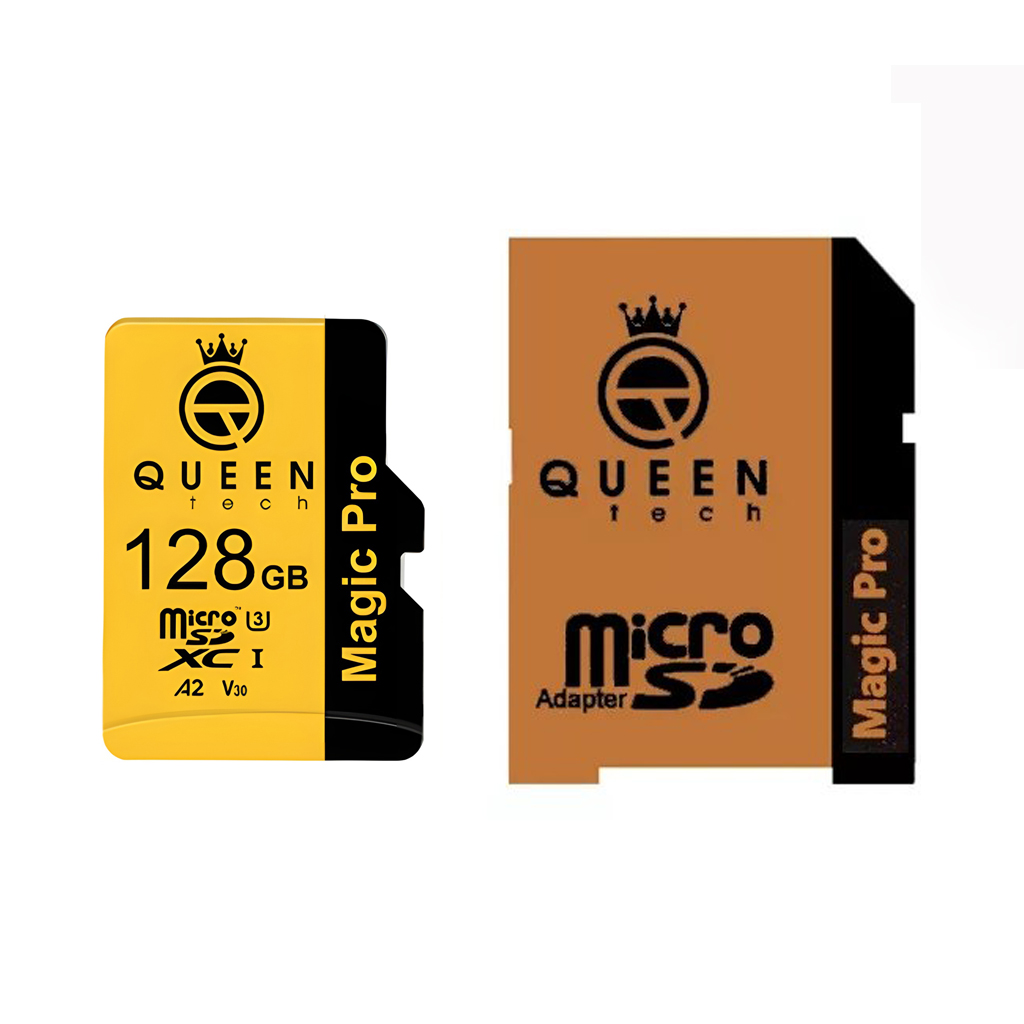 کارت حافظه میکرو اس دی 128 گیگابایت کویین تک مدل QueenTech MicroSD XC CL10 U3 633X Magic Pro UHS-I V30 A2 4K به همراه آداپتور با گارانتی مادام العمر شرکتی