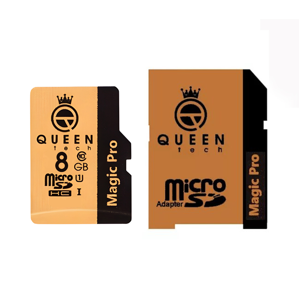 کارت حافظه میکرو اس دی 8 گیگابایت کویین تک مدل QueenTech MicroSD HC CL10 U1 633X Magic Pro UHS-I V10 به همراه آداپتور با گارانتی مادام العمر شرکتی