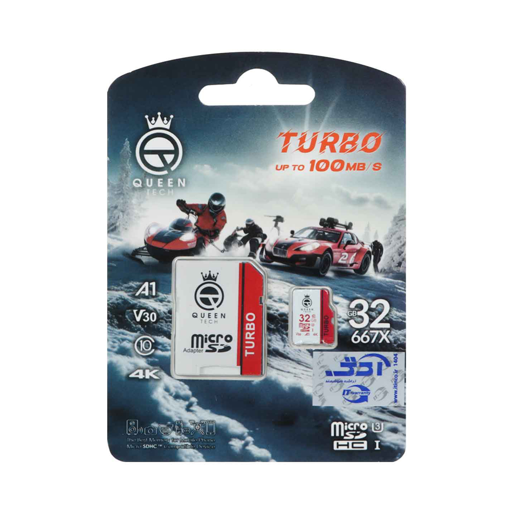 کارت حافظه میکرو اس دی 32 گیگابایت کویین تک مدل QueenTech MicroSD 667X Turbo HC CL10 U3 UHS-I V30 A1 4K با گارانتی مادام العمر شرکتی