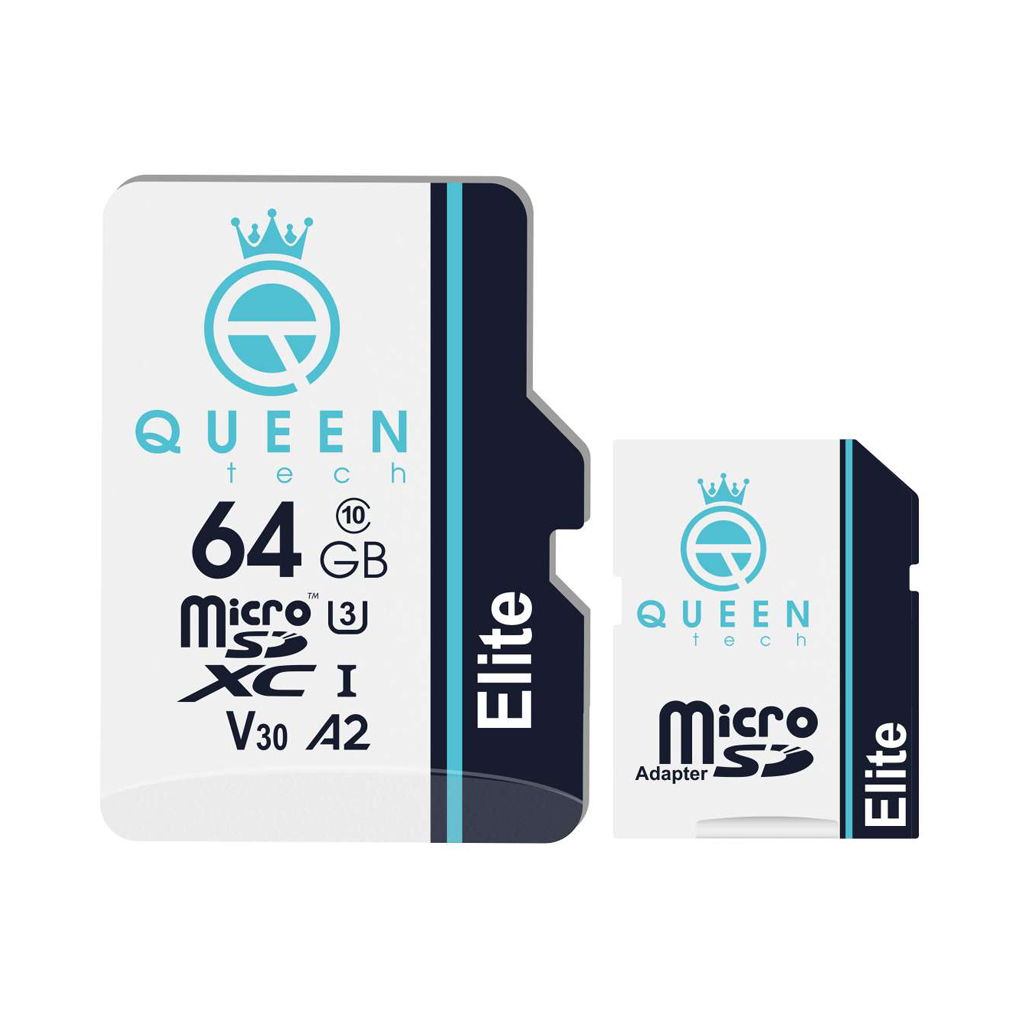 کارت حافظه میکرو اس دی 64 گیگابایت کویین تک مدل QueenTech MicroSD 566X Elite Pro XC CL10 U3 UHS-I V30 A2 4K با گارانتی مادام العمر شرکتی