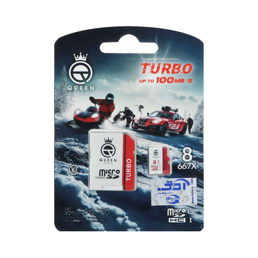 کارت حافظه میکرو اس دی 8 گیگابایت کویین تک مدل QueenTech MicroSD 667X Turbo HC CL10 U1 UHS-I با گارانتی مادام العمر شرکتی
