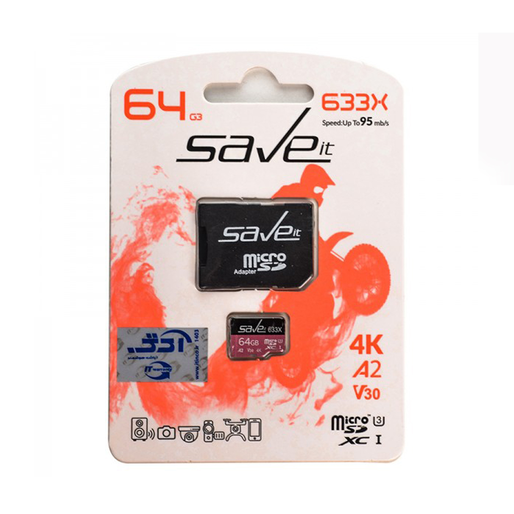 کارت حافظه میکرو اس دی 64 گیگابایت سیو ایت مدل Save it MicroSD XC CL10 U3 633X UHS-I V30 A2 4K با گارانتی مادام العمر شرکتی