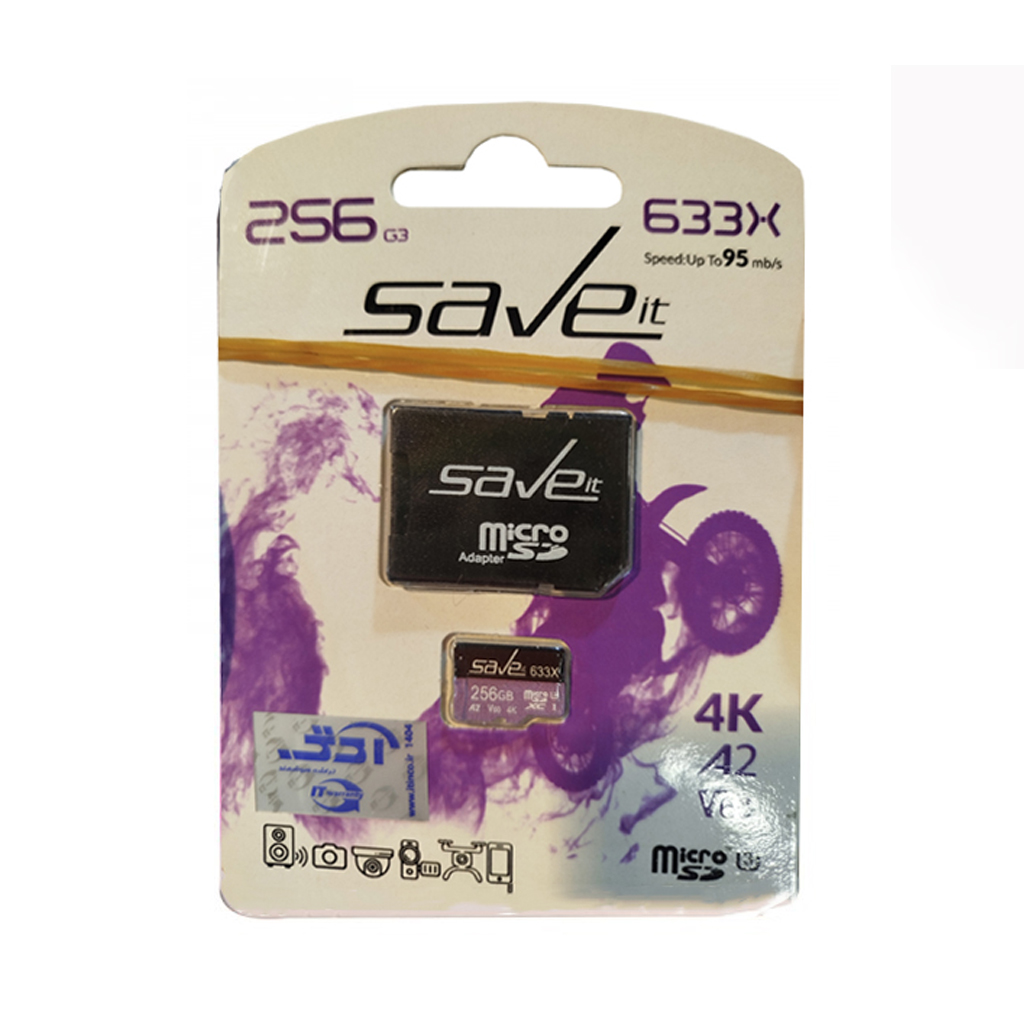 کارت حافظه میکرو اس دی 256 گیگابایت سیو ایت مدل Save it MicroSD XC CL10 U3 633X UHS-I V60 A2 4K با گارانتی مادام العمر شرکتی
