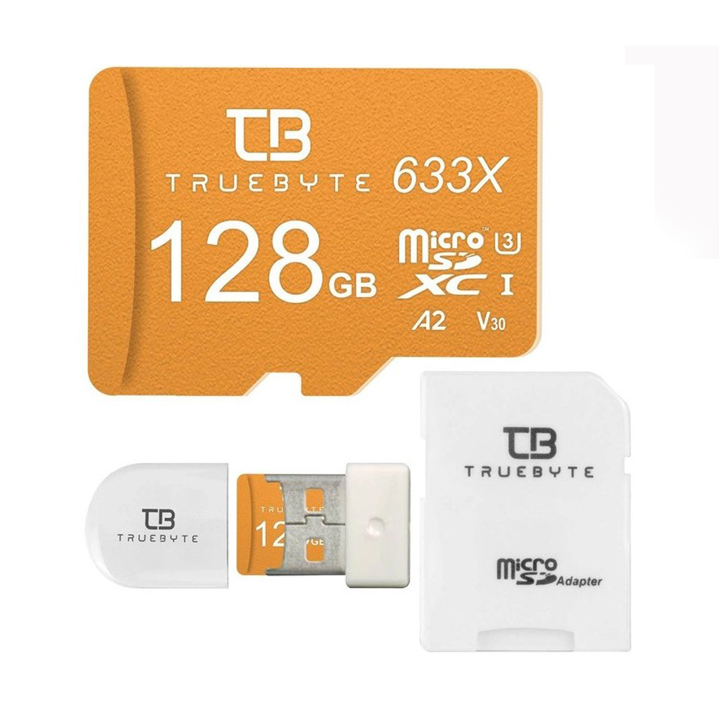 کارت حافظه میکرو اس دی 128 گیگابایت تروبایت مدل Truebyte MicroSD XC U3 633X V30 A2 W/A به همراه کارت خوان با گارانتی مادام العمر شرکتی