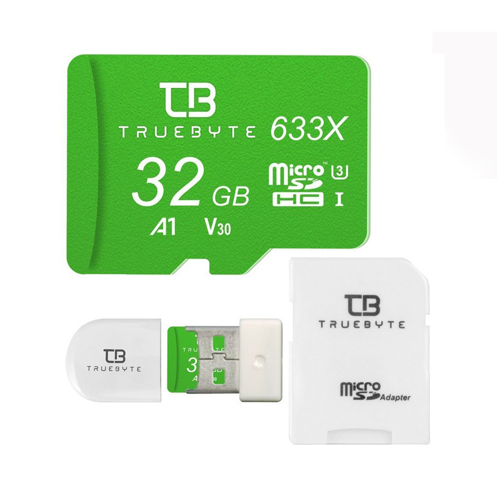 کارت حافظه میکرو اس دی 32 گیگابایت تروبایت مدل Truebyte 633X MicroSD HC V30 A1 Class 10 UHS-I U3 4K Plus به همراه کارت خوان با گارانتی مادام العمر شرکتی