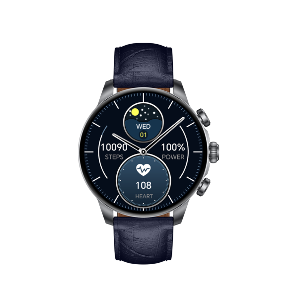 بدنه مشکی بند چرم سرمه ای و بند سیلیکونی قهوه ای