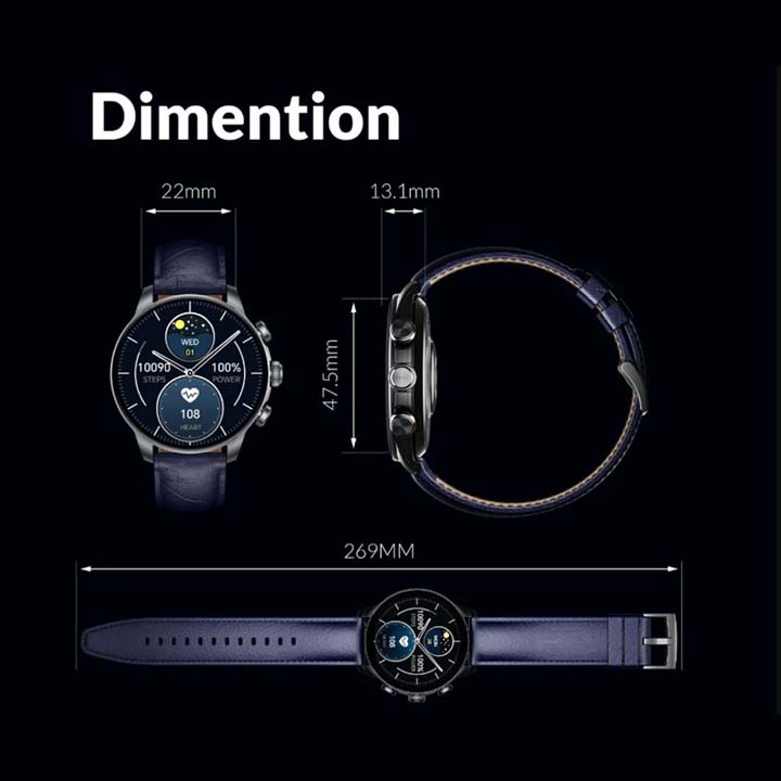 سایز قاب ساعت هوشمند: ۴۷ میلی‌متر