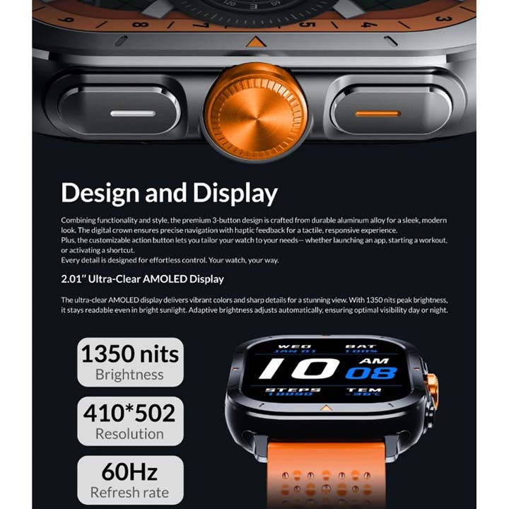 سایز قاب ساعت هوشمند: ۵۳ میلیمتر