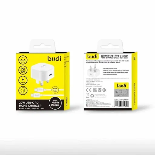 1 عدد شارژر AC361UWS با پورت Type-C (UK Plug) به همراه کابل 65 وات Type-C به Type-C به طول 1.2 متر