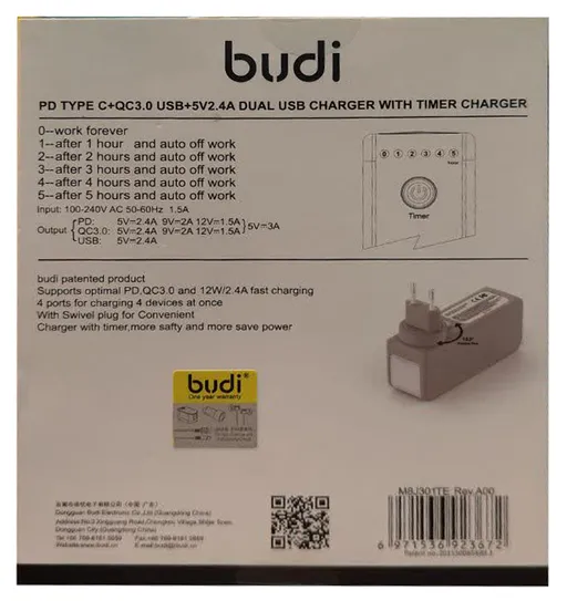 ولتاژ و جریان خروجی QC3.0: 5 ولت 2.4 آمپر، 9 ولت 2 آمپر، 12 ولت 1.5 آمپر