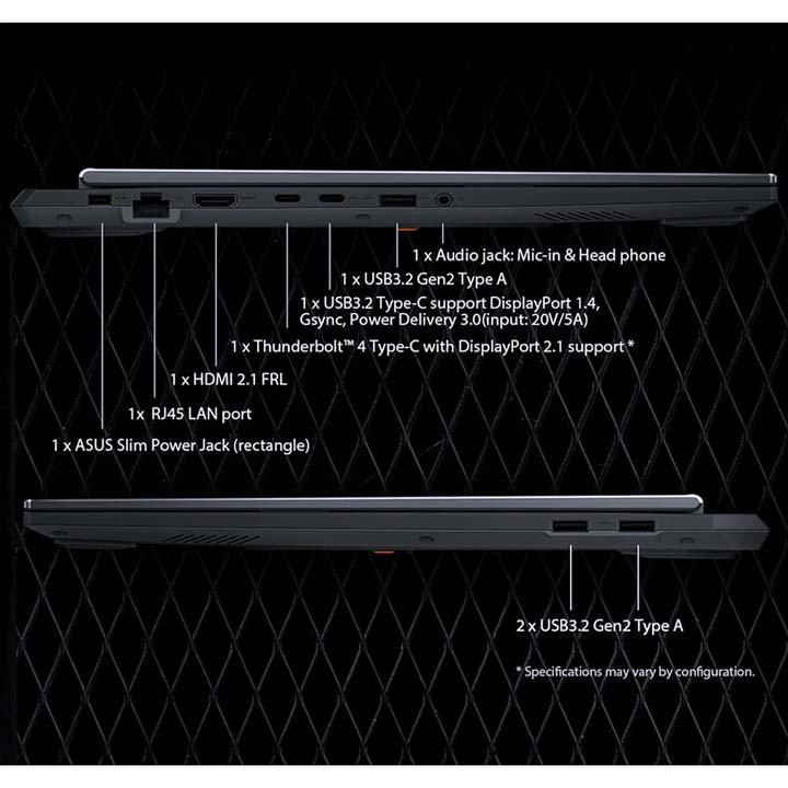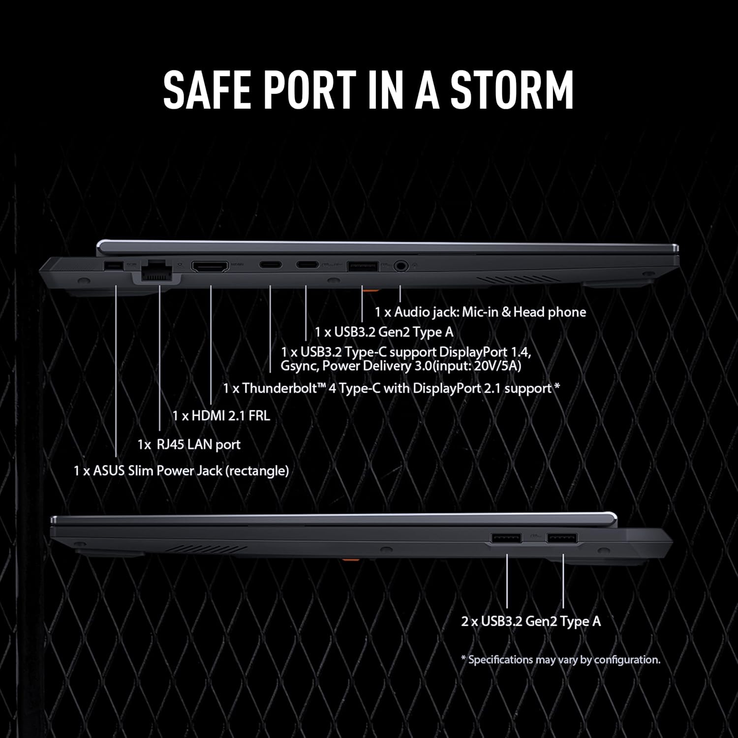 سایر توضیحات درگاههای ارتباطی: دو عدد USB-C (یک عدد Thunderbolt ۴ با سرعت ۴۰ گیگابیت بر ثانیه و پشتیبانی از DisplayPort و G-SYNC، یک عدد USB ۳.۲ Gen۲ با سرعت ۱۰ گیگابیت بر ثانیه و پشتیبانی از DisplayPort و شارژ) / سه عدد USB-A (Gen۲ با سرعت ۱۰ گیگابیت بر ثانیه)