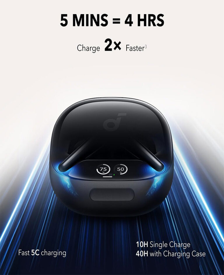 تا 7.5 ساعت پخش با ANC فعال (تا 30 ساعت با محفظه شارژ)