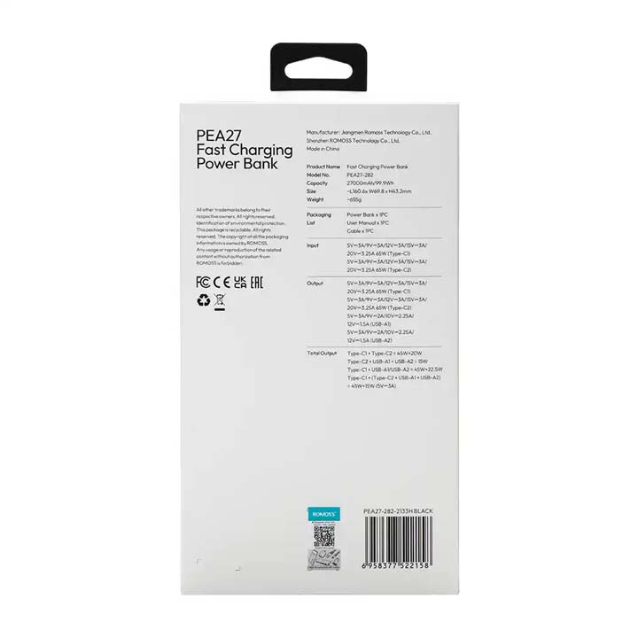 تایپ سی 1 و تایپ 2: 5V/3A – 9V/3A – 12V/3A – 15V/3A – 20V/3.25A (حداکثر توان خروجی 65W)