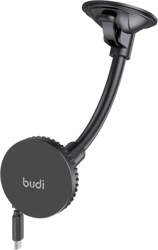 شارژر و نگهدارنده مغناطیسی بیسیم خودرو Budi – نصب روی شیشه جلو و دریچه کولر + کابل جمعشونده 1 متری