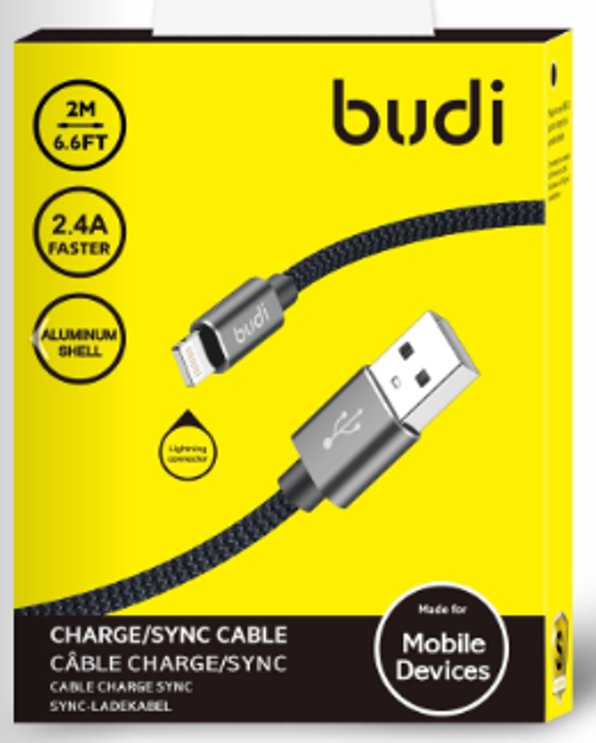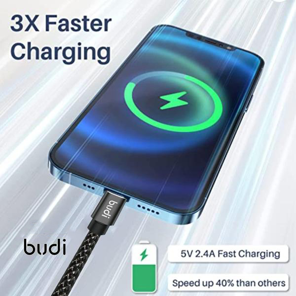 کابل شارژ کنفی USB به لایتنینگ بودی مدل Budi DC206L20B طول 2 متر با گارانتی ۱۸ ماهه شرکتی (۶ ماه تعویض)