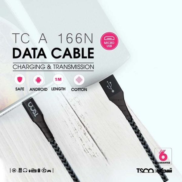 کابل شارژ کنفی USB به microUSB تسکو مدل TSCO TCA 166N طول 1 متر با گارانتی 12 ماهه شرکتی